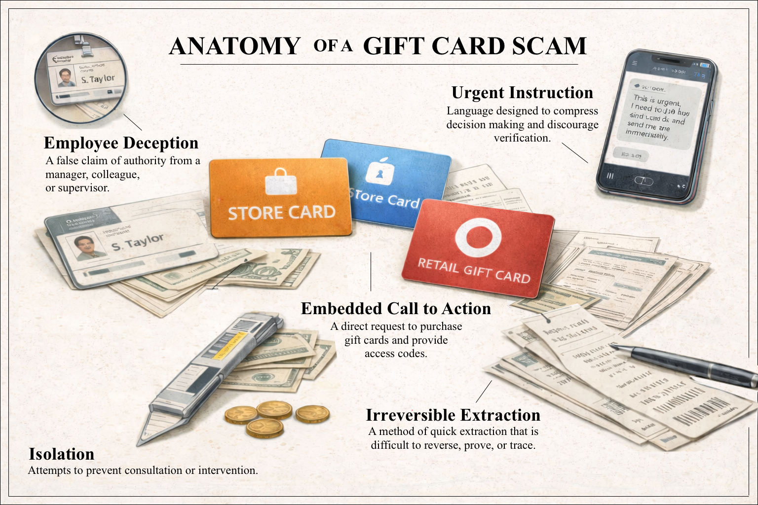 Gift card scams persist not because they are elaborate, but because they are assembled from actions that people perform every day.