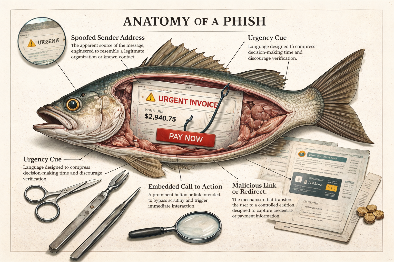 Nearly every successful phishing attempt follows the same internal anatomy. The surface details change. The underlying components do not.